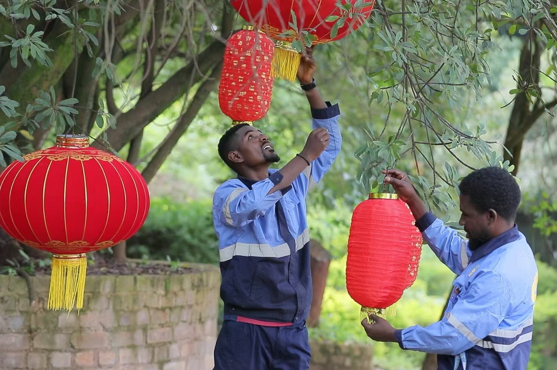 暮色渐浓,中铁资源投资建设并运营管理的刚果(金)布桑加水电站的营地内一个个高高挂起的红灯笼次第亮起,一幅幅写满祝福的春联贴满门窗,一串串闪烁不停的彩灯缠绕在枝头,流光溢彩、如梦如幻。“我感觉中国的新年特别有氛围,红彤彤的灯笼、喜庆的春联、真诚的祝福,这样热闹红火的样子,让人心里充满了希望,也感受到了满满的幸福。”水电站属地员工萨迪克脸上洋溢着幸福的笑容,语气中满是喜爱。“中国的新年和我们当地的传统节日不一样,虽然很多习俗我还不太熟悉,但这种团圆、热闹、温暖的感觉,却让我觉得特别亲切、特别美好。”另一位属地员工克里斯多夫连连点头附和,眼中满是憧憬。
